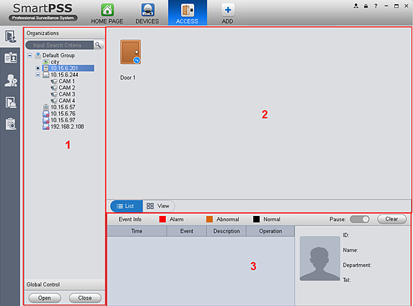 Access controller must be added into SmartPSS client, please refer to device adding steps in Ch 3.5.