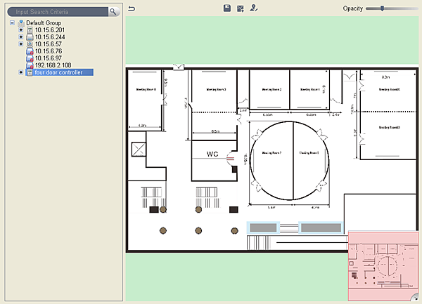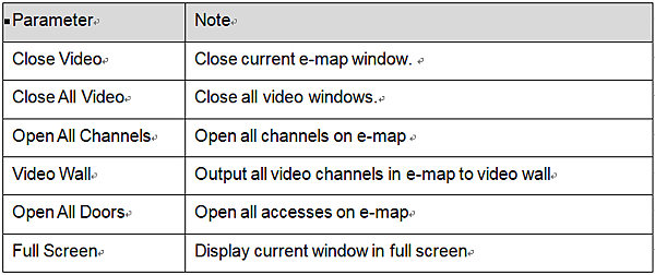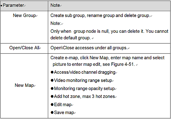- E-map preview: After you edit map, you can drag e-map into video window for preview. Scroll your mouse to zoom in/out; click (or move mouse to range within camera) camera icon on mao to open video, right click access control on mao to enable/disable access.