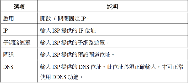 4. 固定 IP :ADSL 固定 IP 請選擇此項。