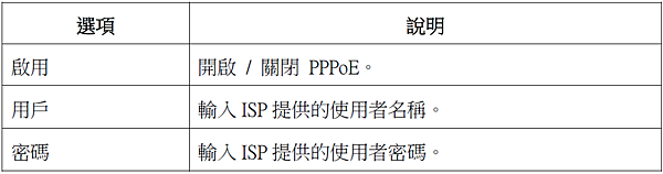 5. PPP oE : ADSL 浮動 IP 請選擇此項。 必須設定下列參數 。