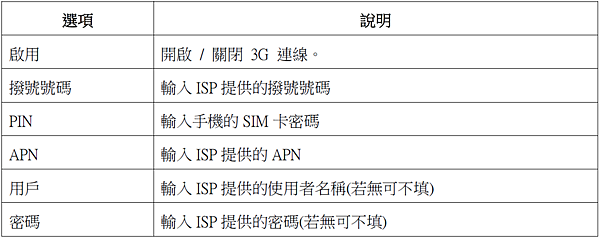 6. 3G 網卡 :使用手機網路 請選擇此項。