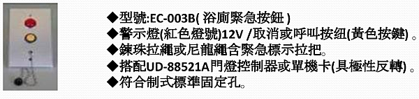 用於需緊急呼叫場所如浴廁或銀行櫃台等。