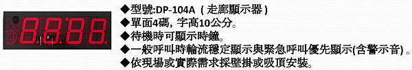 緊急呼叫時病床號碼可同時顯示於護理站值機台且走廊顯示器閃爍顯示,並發出警