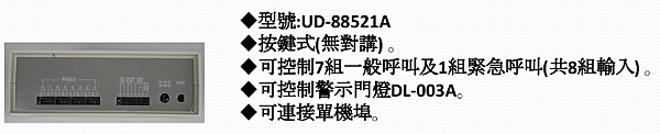 可控制7組一般呼叫及1組緊急呼叫(共8組輸入)