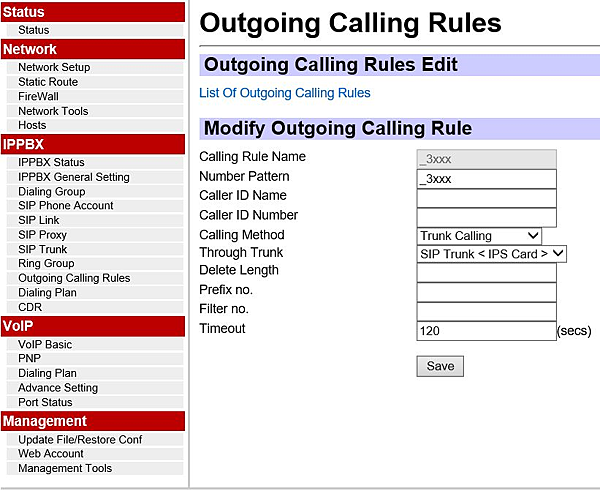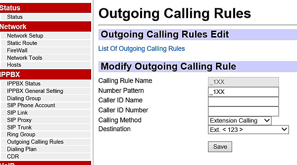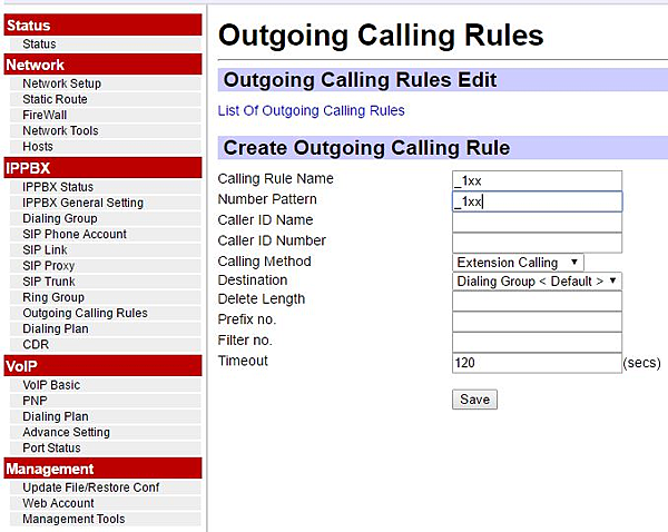 在Outgoin Calling Rules選單: