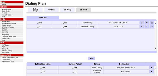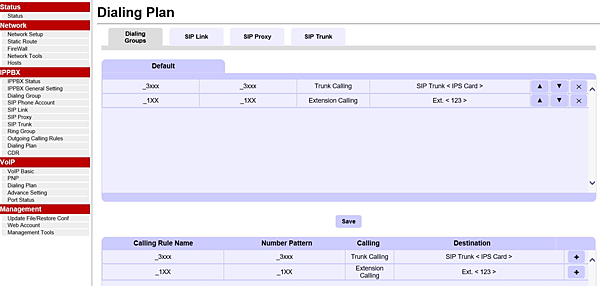 然後在將兩組撥碼規則加入Dialing Plan的