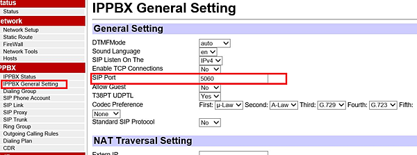 手機註冊的sip port在ippbx general setting 更改