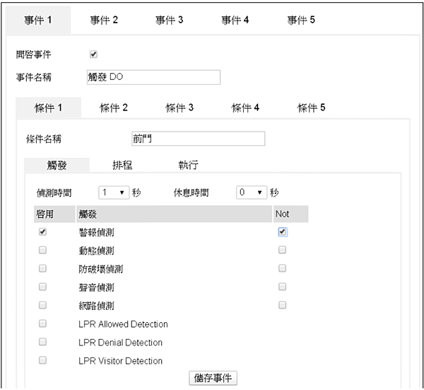 智慧事件共有5個事件可供使用,事件與事件間為獨立運作,